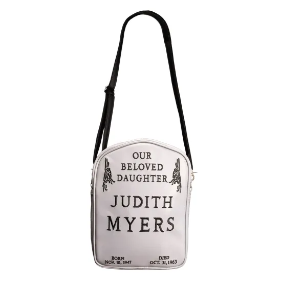 Trick or Treat Studios is proud to present the officially licensed, Halloween (1978) – Judith Myers Tombstone Bag. This incredible purse, made using the highest quality vegan leather for excellent durability, features embroidered details, and a themed PVC zipper pull. The purse has an adjustable strap, a soft inner lining with a large center pocket, and two side pockets. This bag can be worn as a purse, cross-body, or backpack to make it comfortable for everyone! Order yourself Halloween (1978) – Judith Myers Tombstone Bag in loving memory of “The night he came home!”
