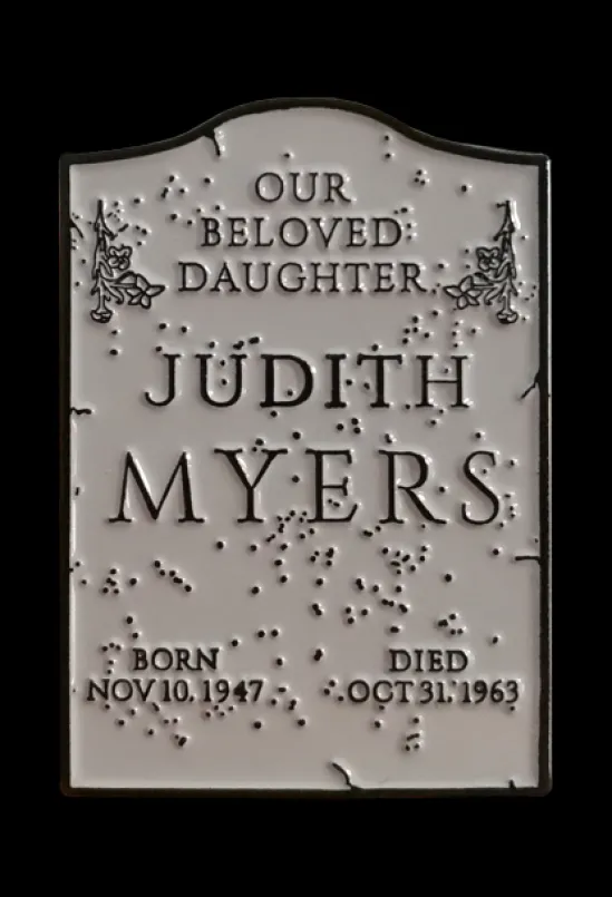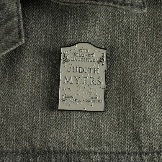 Show your fandom with your very own officially licensed Halloween (1978) – Judith Myers Tombstone – Enamel Pin! This high quality, black and white, enamel pin, with locking pin back, is perfect to put on a shirt, jacket or backpack.