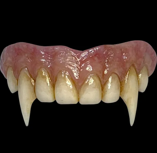 Trick or Treat Studios is proud to offer Hammer Horror – Dracula teeth! Sculpted by a Hollywood FX Teeth Specialist, each set of rigid plastic teeth is meticulously painted to show all the monstrous detail. Set includes upper teeth only, featuring killer fangs. To easily apply your teeth, simply heat the Friendly Plastic Pellets in hot water, position the melted Friendly Plastic into the teeth, and fit them over your own teeth.