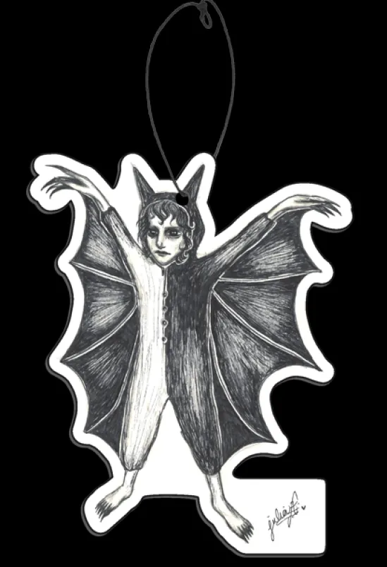 Show your fandom with your very own officially licensed Little Ghouls – Bat Boy – Fear Freshener®! This beautiful, black and white, air freshener comes with an elastic band to make it easy to attach to any place you want to smell clean and fresh. Check out more of the Little Ghouls unique and eerily beautiful artwork, candles and more at Little Ghouls Art.