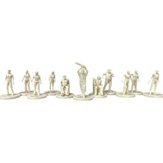 11 expertly sculpted miniature versions of characters from The Texas Chainsaw Massacre. These collectible miniatures stand 40mm tall from base to top. Each one is paintable for ultimate customization. Perfect for display or use in The Texas Chainsaw Massacre board game.