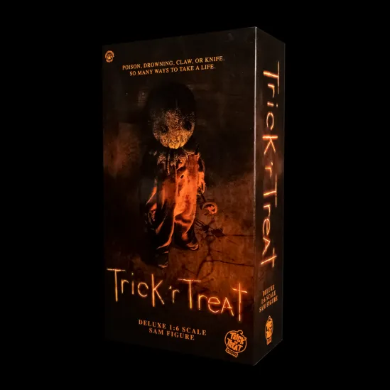 Trick or Treat Studios is proud to present the officially licensed, Trick ‘r Treat – Deluxe 1:6 Scale Sam Figure! This poseable figure stands approximately and features 30+ points of articulation. Includes Burlap Sack Head, Unmasked Head, 4 Additional Hands, Hollie-Ho Bar Razor Lollipop, Bitten Lollipop, Trick or Treat Bag, Light-Up Flaming Jack O’ Lantern, and a Sidewalk Base. Fully clothed in a screen-accurate costume with a soft fleece onesie featuring patchwork details and burlap and rope mask materials. The sidewalk base features artificial grass and storm grate detail. Arrives in a beautiful collector’s box with a flip back window display. This is the ultimate Trick ‘r Treat Sam Action Figure, order now!