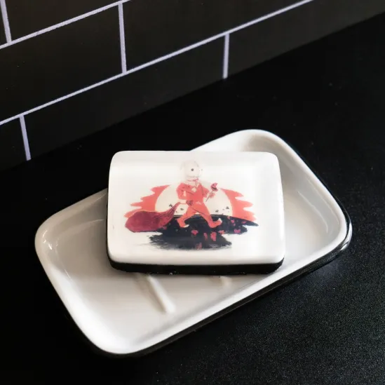 This beautiful multi-layered soap bar has a color image of Sam beneath clear soap allowing the image to last through many washes. Use it to keep your hands clean or keep it as a decoration/collectible. Not only scary cool, but great for your skin!